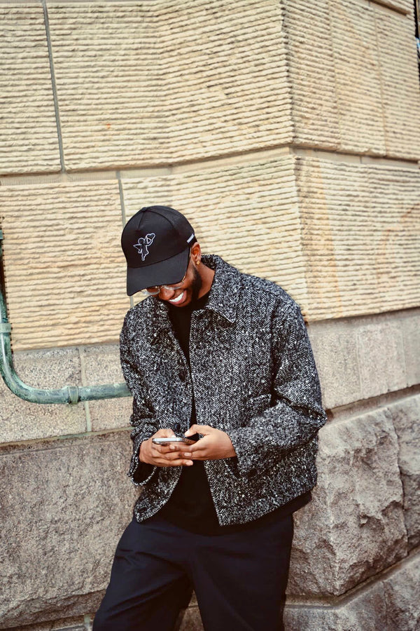 Black cotton cap with an embroidered YOURCHASE angel emblem, finished with a black logo and white outline.Subtle side branding and the signature slogan embroidered at the back.Structured crown, curved brim...
